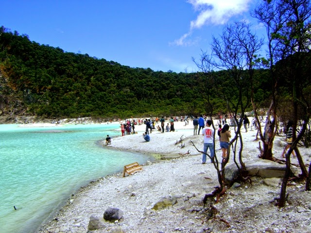 - Semua capek dan berpusing-pusing ria jalan tadi bakal kebayar setelah kita lihat Kawah Putih Ciwidey dengan mata kepala sendiri. Tanahnya putih kapur kontras dengan warna air kawahnya yang biru tosca. Warna air kawahnya pun bisa berubah-ubah gitu, tergantung sama sinar matahari yang lagi nyinarin. Kita juga bisa ngelihat langsung awan-awan yang jalan begitu cepatnya di atas tebing-tebing yang mengelilingi kawah. Ada hutan-hutan yang eksotis banget gitu lagi! Pokoknya foto-foto Kawah Putih yang selama ini kita lihat nggak ada apa-apanya, IT WAS AMAZING!